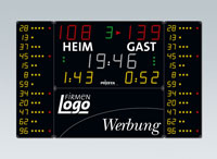 Spielergebnis-Anzeigetafel für den Innenbereich, mit LED-Textdisplay für Mannschaftsnamen. Artikelnummer: 24.676.322